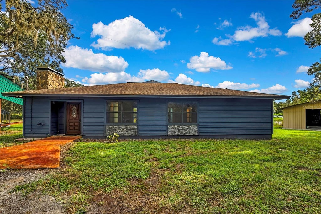 Set against a backdrop of 2.5 acres with a pond view, this Crenshaw Acres home offers 3 bedrooms, 2 baths, and 1,617 square feet of comfortable living space with versatile outdoor amenities. Extensive updates bring peace of mind including Exterior paint 2025! NEW Roof and A/C 2020! Water Heater and Water Softener 2020! Updated Plumbing 2020! Remodeled baths 2020! Zoned for STEINBRENNER School District. The welcoming entry features a Ring doorbell and front door with a glass insert. Inside, the family room showcases engineered hardwood floors and a modern stacked-stone wood-burning fireplace flanked by sidelights, along with a closet and two sets of double sliding glass doors leading to the lanai. The kitchen remodeled in 2020 includes cabinetry with a Quartz counter, tile backsplash, a farmhouse sink beneath a window overlooking the backyard, a closet pantry, and an island with cooktop and lighted vent hood. A breakfast bar provides ample seating and opens to the family room. Off the kitchen, the laundry room comes equipped with washer and dryer plus direct backyard access. The master suite features engineered hardwood flooring, a walk-in closet, and an ensuite bath with a glass-enclosed tiled shower, double-sink vanity, and skylight. Secondary bedrooms are well-sized with closets and share a full bath with a vanity and tub/shower combo with glass enclosure. A split-bedroom floor plan ensures privacy. A hallway with sliding glass doors opens to a spacious screened deck at the center of the home—perfect for gatherings with family and friends. This area also includes a storage room with an access door to an additional deck with steps down to the expansive backyard, where deer and other wildlife can often be seen. Outdoor living is further enhanced by a detached garage (approx. 24x32) with concrete floor, a 14x36 RV carport, open parking, and a chicken coop. The treed area in back, adds natural charm in a parklike setting alongside peaceful pond views. Crenshaw Lake Road provides a tranquil residential setting with proximity to major thoroughfares including US-41, SR-597, and I-275—ideal for quick travel into Tampa or surrounding areas. Shopping, dining, schools, parks, and medical facilities are all within easy reach, offering both convenience and serenity. Don’t miss your chance to own this unique Lutz property—schedule your private showing today!
